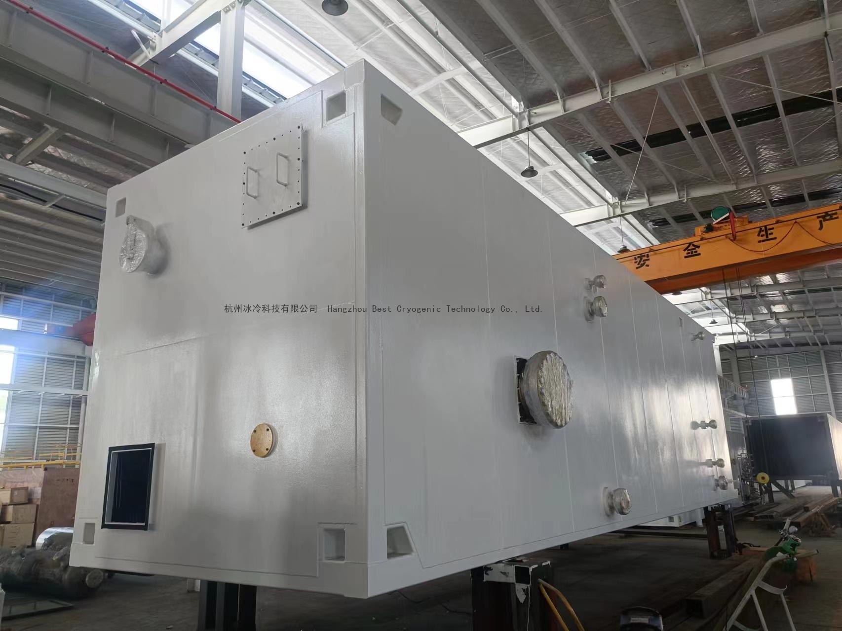 针对井口天然气气源条件,我公司自主研发的多元混合冷剂液化工艺包及其配套的核心液化冷箱,完成生产制造。