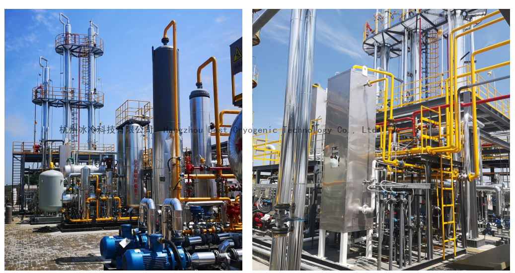 长庆油田合水3万方/天原油稳定驰放气混烃低温分离设备,采用混合冷剂液化工艺,进行油田放空气进行混烃分离与回收。